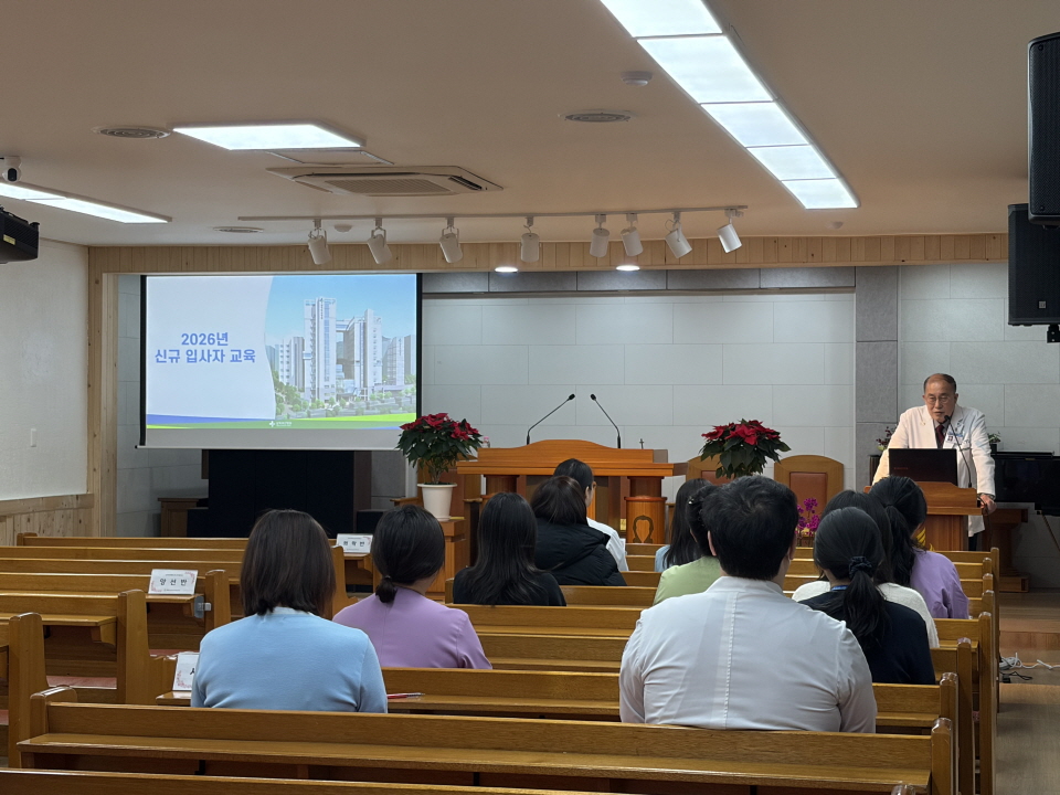 1월 21일, 삼육부산병원 별관 3층에서 2026년 1월 입사자들을 대상으로 집체교육을 실시하였다. 신규교육에는 총 11명의 신규 입사자들이 참석하였다. 교육은 교단 소개 및 원목실 소개, 부서장 소개, 인사와 노무, 연간 직원교육 안내, 연간 직원검진 및 MSDS교육, 급여 안내, 간호간병통합서비스교육, 환자의 권리와 의무, 병원구조 및 간호부 조직, 의료폐기물관리교육, 환자 이송 및 낙상, 욕창교육 등의 내용으로 진행되었다. 알찬 강의를 해주신 강사분들과 열심히 교육에 임해주신 신규입사자분들 진심으로 감사드립니다.