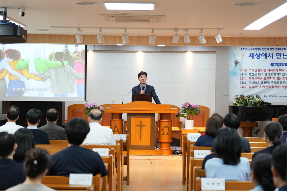 4월 20일부터 24일까지 김근수 목사(안산희망365교회 담임)를 초청해 전반기 직원신앙부흥회가 진행됐다. 이번 부흥회는 “세상에서 만난 치유자”를 주제로, 분주한 일상 속에서 지친 심령을 위로하고 복음의 본질을 다시 붙드는 은혜의 자리로 마련됐다.